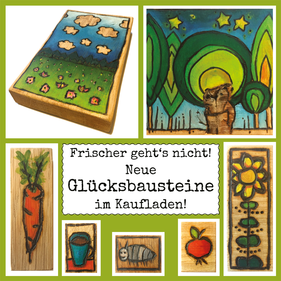 Dear sofa heroes, in the beginning the pandemic seemed like a bad dream, but after a while we slowly realized that it is becoming reality. We each have personal experiences. We each have a cross to bear. Sometimes it is very easy and sometimes we need help with this burden. We need to focus on the positive aspects of life again and this requires strength. I am creating Lucky-Blocks to help you with that! They can remind you of what makes you happy. Each is unique; each an original that only exist once. How are they made? First, I burned the outlines of my drawing into old oak wood. Then I color them with oil paints. You can hang them at the wall, put them on a shelf, or place them where you want them to remind you of your happiness. You can find them now in my store, in the „Unikate“ section! I also will grant special wishes or requests for you. Choose your piece of oak, tell me your wish, and I will create your own Lucky-Block. For those of you who can't make up their mind, there is now the new category „Gutscheine“ (vouchers). Nicely wrapped as a gift. And for all of you who are still looking for little things for the advent calendar, take a look at the category „Schnick Schnack“. Here you will find nice little items, which surely fit into a small bag. I appreciate any support! It would be so nice if you could tell your friends and everyone you know about it. Please show solidarity with me and spread this post! I appreciate and thank you for your help. Yours Anna