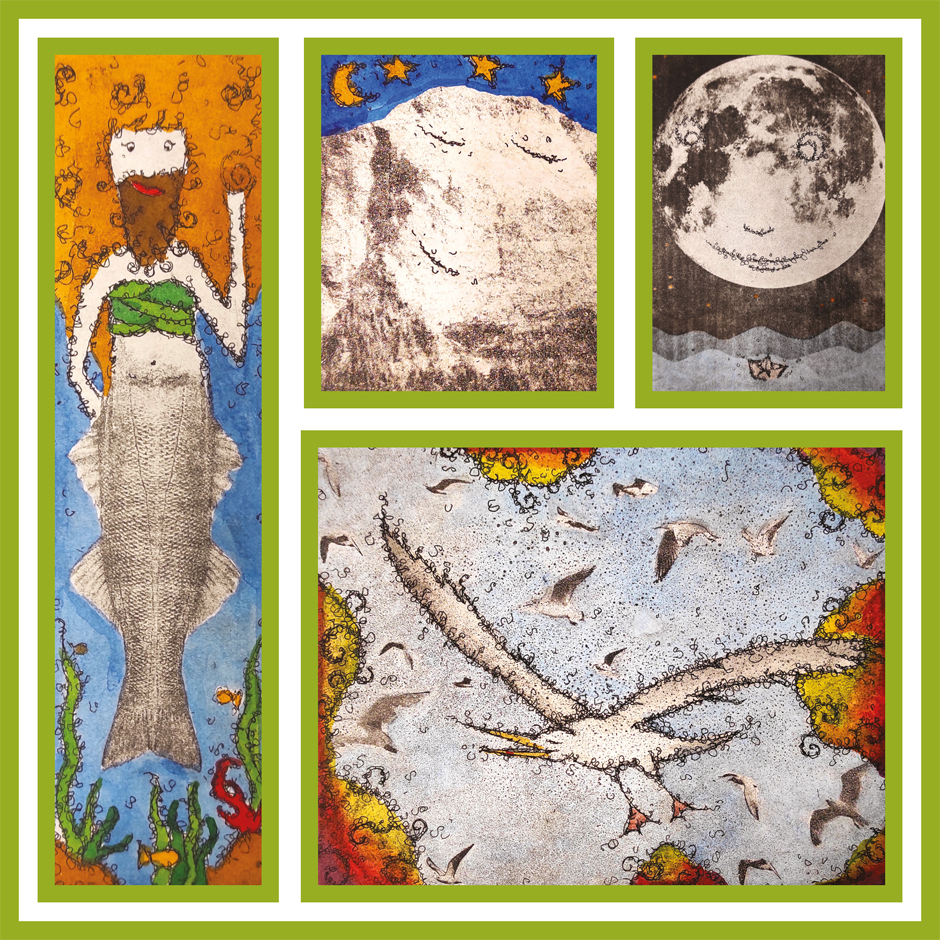 Summer, sun and cyclops! As of today, my new works, the Cyclopes, are available in my store. There are 5 new colorful etchings. Why Cyclopes? Cyclopes have the ability to create powerful weapons. They made the lightning bolts of Zeus, the thunderbolt of Jupiter or the shield of Athena. The Cyclopes you see here have a special mission. They are messengers of the gods to protect you. They forge weapons of argumentation together with you. Stinging answers and cutting arguments are no longer a problem for you! They will make it easier for you to deal with difficult people. There are 8 Cyclopes in total. Their names are Brontes, Arges, Euryalos, Halimedes, Steropes, Elatreus, Trakhios and Polyphemus. I have been able to depict 7 Cyclopes here as etchings. Elatreus and Trakhios are very shy, they are hiding with Steropes. I didn't include Polyphemus in the picture. When we spoke on the phone, he told me he didn't have time to model for me. He had a problem with Odysseus at the moment and had to fix it first. Here is the direct link for you.