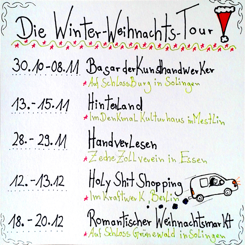 Truth! Santa ask me, if I could support him, this year. He has plenty to do and the increasing air traffic, troubled him. Wich is obviously understandable. Therefore, I'll bring my etchings personally to you and start a very extensively „Winter-Christmas-Tour!“. Santa and I, would be very happy, if you will visit me, on my tour. Your Anna! : )